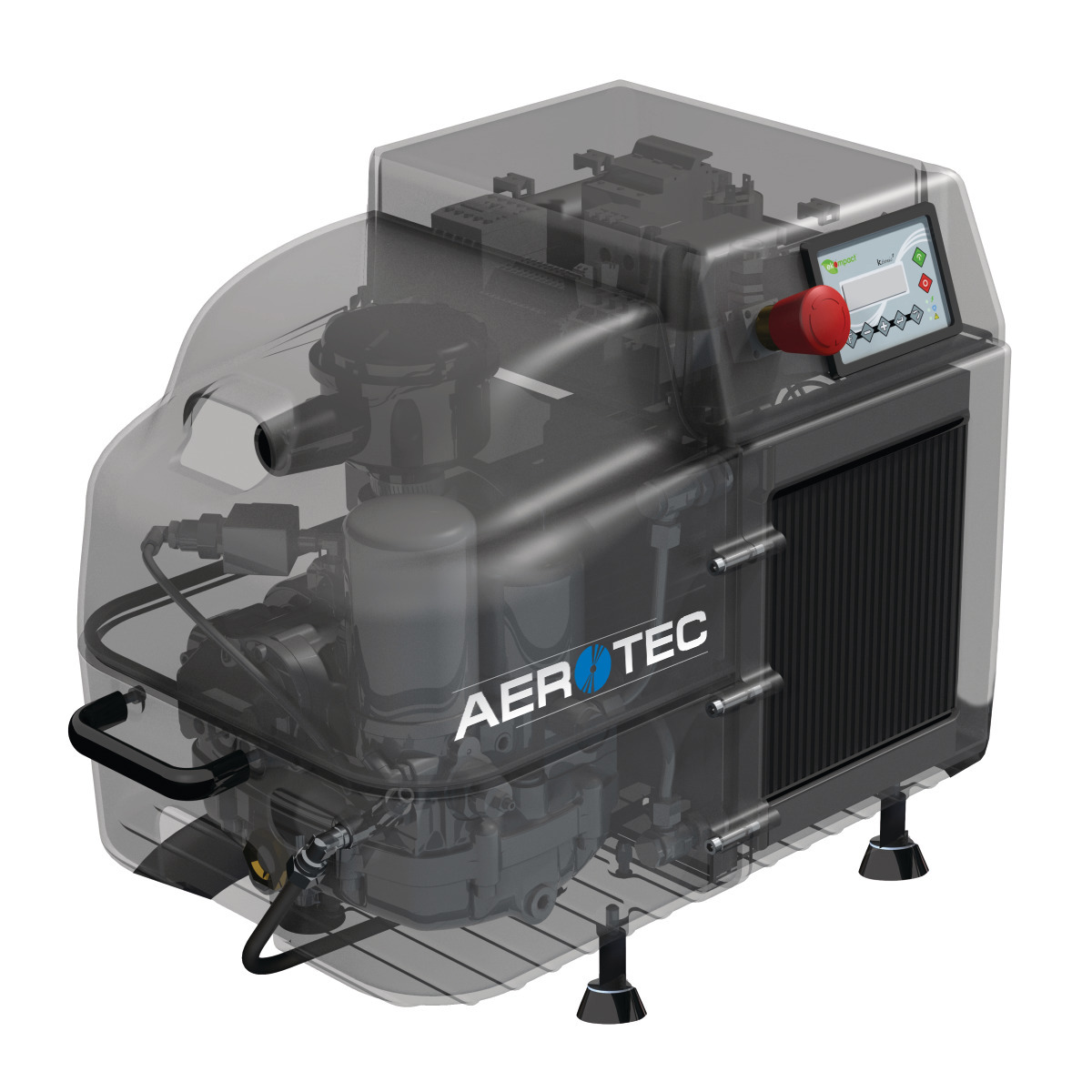 Unsere Aerotec COMPACK SMART 2 verfügt über eine Mikroprozessorsteuerung KT5 zur Programmierung sowie über eine Anzeige der wichtigsten Arbeitsparameter und Betriebsstunden. Außerdem verfügt diese Anlage über eine GLW-Funktion für bis zu 4 Anlagen. Besonders macht unsere COMPACK SMART 2 die integrierte Drehrichtungskontrolle und Fern-Ein-Aus-Funktion. Die ebenfalls integrierte Ölheizung zur Vermeidung von Kondensatbildung im Verdichteröl optimiert diese Anlage. Unsere COMPACK SMART 2 ist zudem äußerst kompakt und ist somit perfekt als Beistellerbasis oder zur Nutzung auf Servicemobilen. Die seitlich angebrachten Tragegriffe ermöglichen eine leichte und angenehme Handhabe.