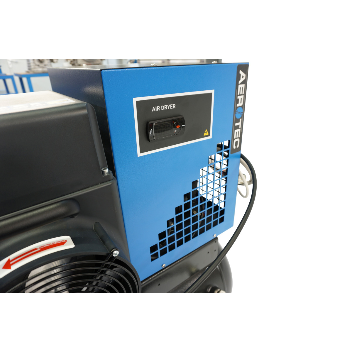 Bei unserer Aerotec COMPACK SMART 2 TR-90L PRO handelt es sich um eine komplette Kompressoranlage für den 24 Stunden Betrieb ohne Schallschutzkabine. Mit ihrer hochmodernen Mikroprozessorsteuerung können diese Anlagen in ihren Parametern programmiert und permanent systematisch erfasst werden. Die Steuerung ermöglicht einen automatischen Wiederanlauf nach einem Stromausfall und zeigt die wichtigsten Wartungsparameter im Display an. Weiterhin verfügt die Steuerung über die Möglichkeit der Aktivierung REMOTE sowie Fern-Ein-Aus. Somit haben Sie Ihre Druckluftanlage immer im Blick – egal, wo Sie sich aufhalten. Dadurch, dass diese Anlage auf Gummipuffern gelagert ist, ist diese zudem absolut Vibrationsfrei.