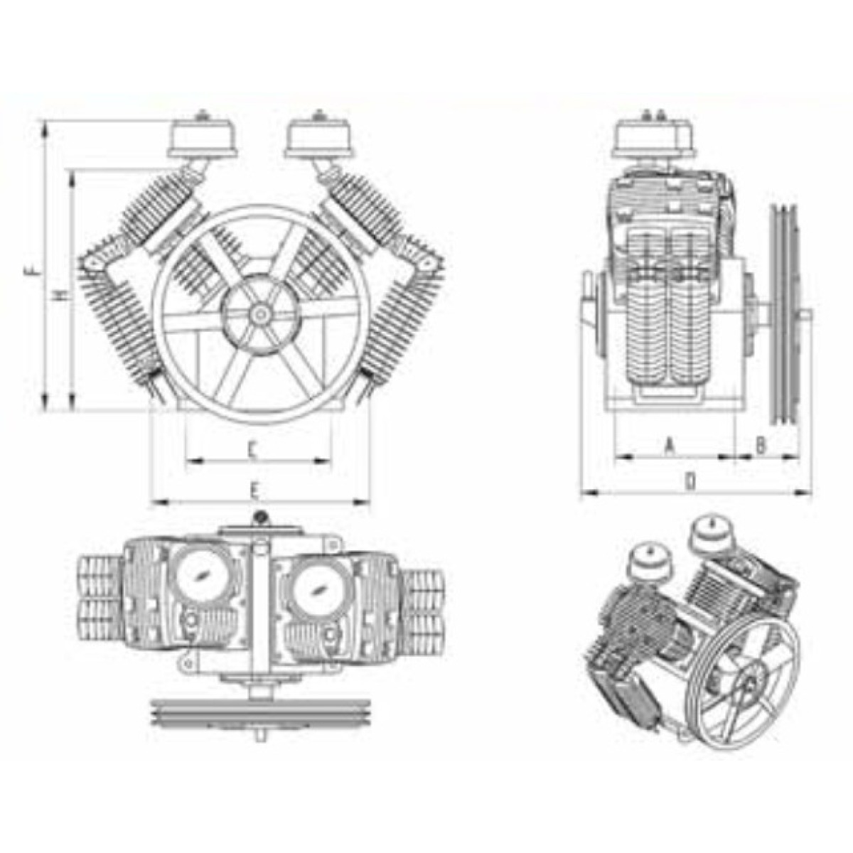 • Maße (mm / siehe Zeichnung): A: 283, B: 190, C: 388, D: 520, E: 890, F: 700, H: 588